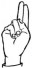 На ћирилици написано БЛАЖА МИНИЋ састоји се из 10 слова [?]. Исписано ћириличном једноручном азбуком за глувонеме: